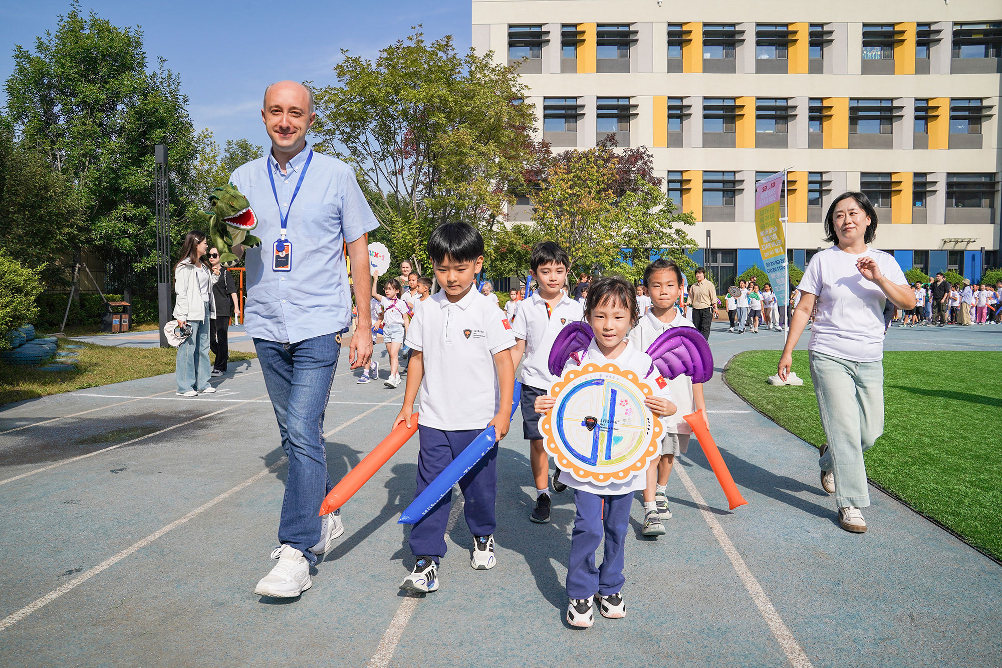 彩带在空中划出绚丽的弧线,欢呼声在校园里久久回荡,盍碧玺曼詹学校第三届 FUN 肆运动会正式拉开帷幕。如今,这项运动会已成为学校标志性的文化与体育交融的活动,不仅承载着学校对学生体能提升和团队协同能力培养的重视,更成为了每一位学生心中最期待的校园盛事。