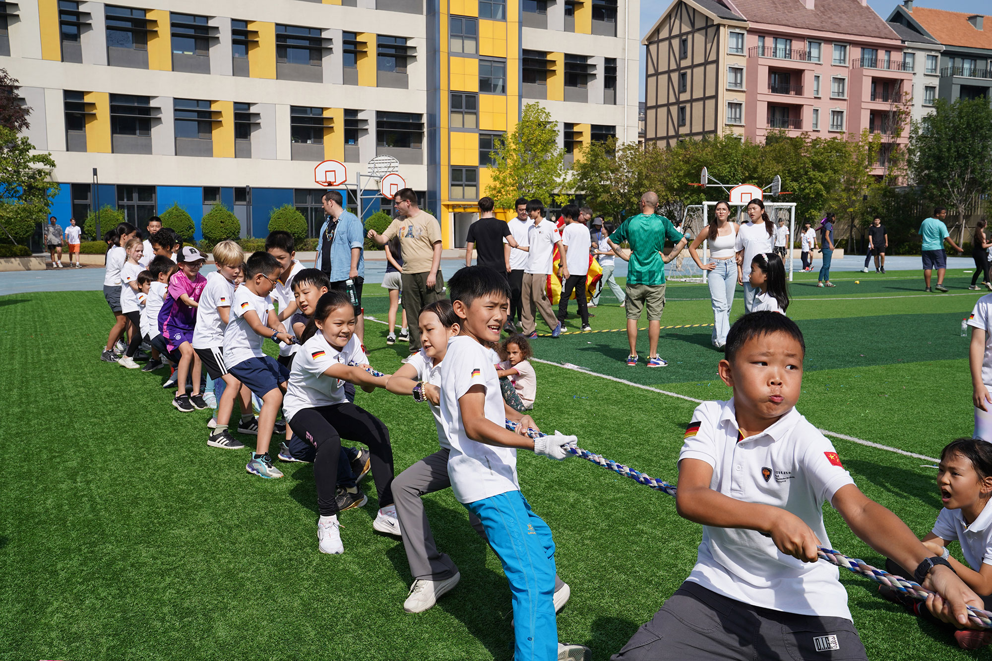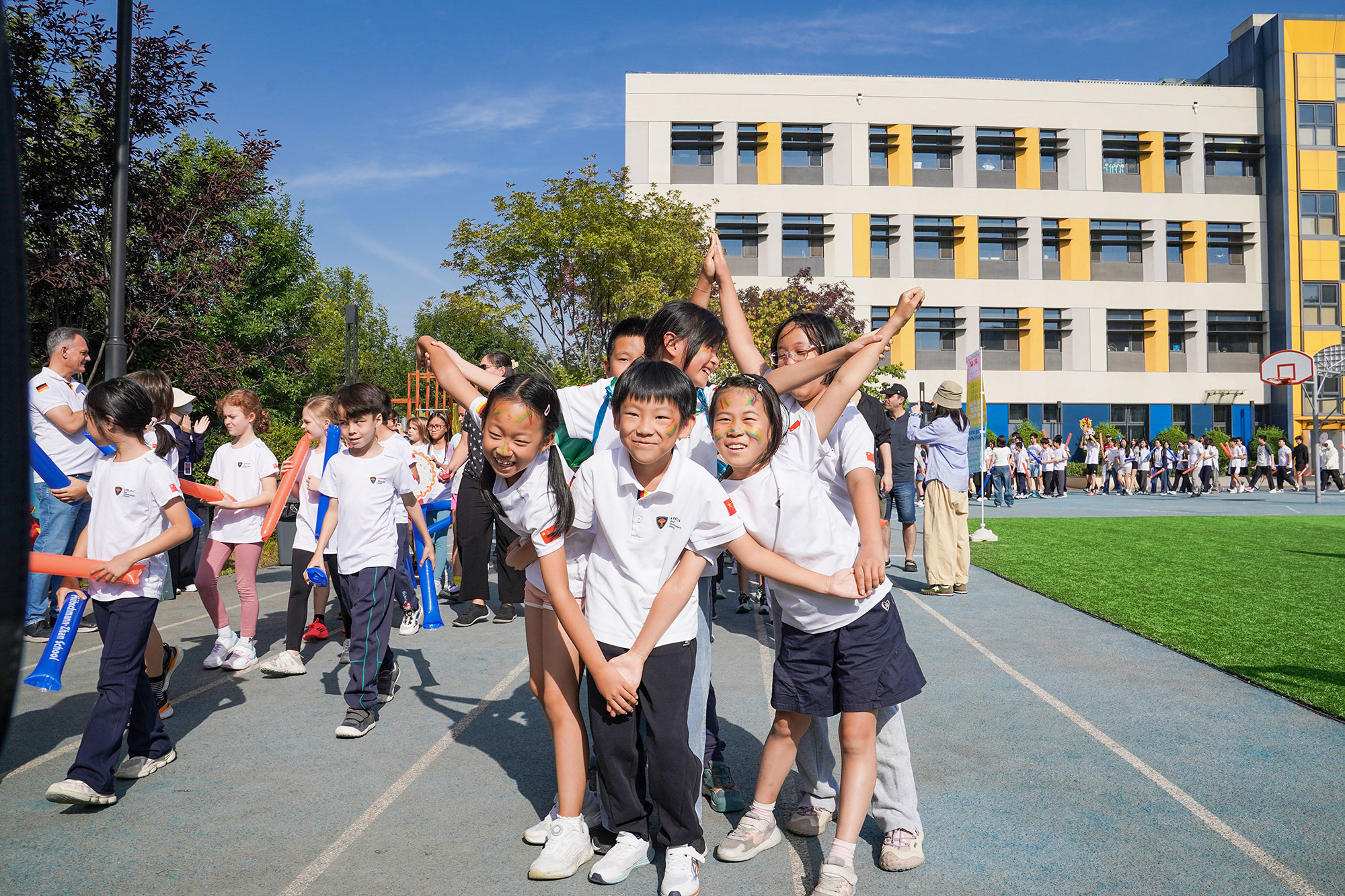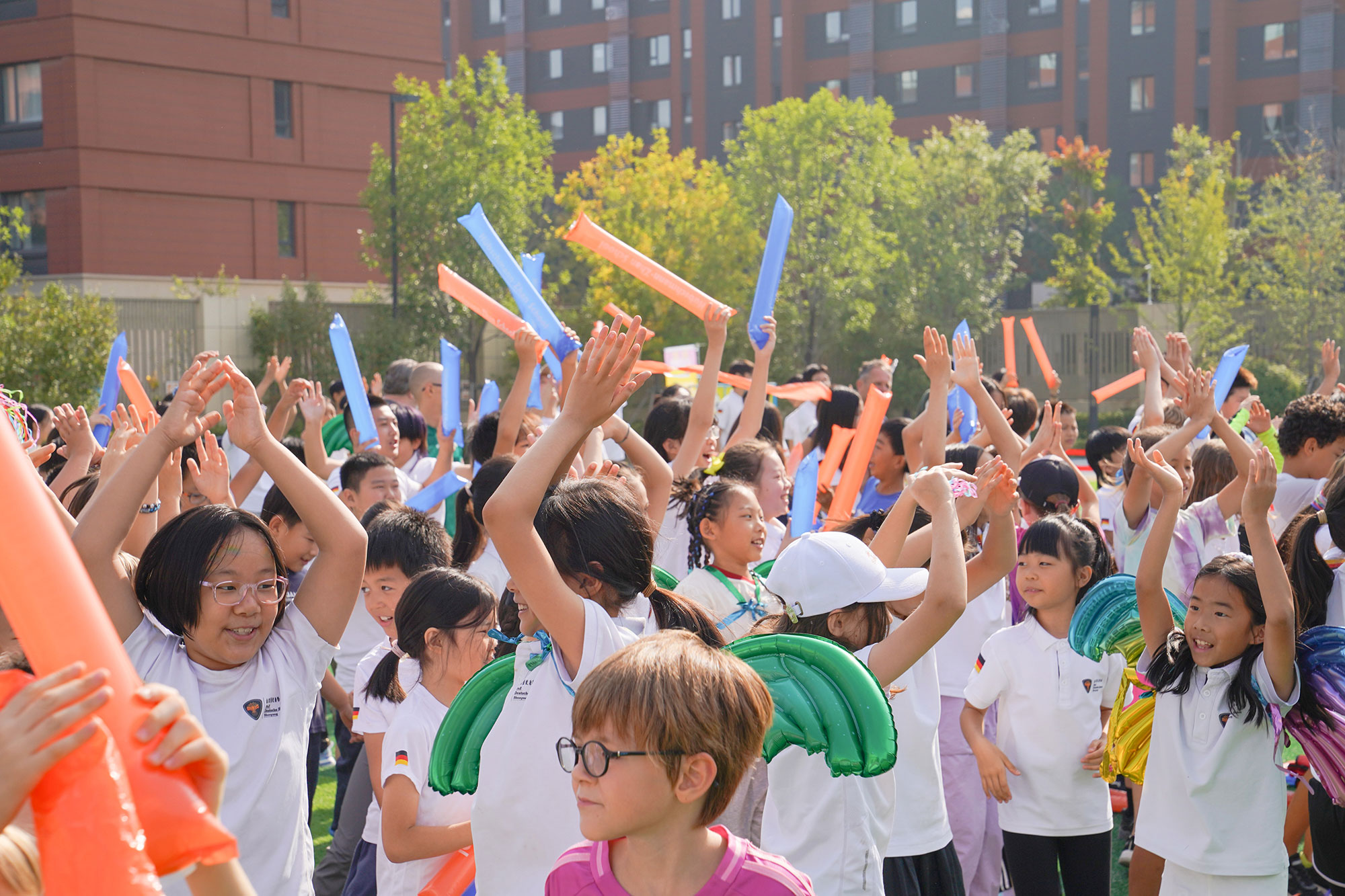 入场仪式无疑是运动会开篇最亮眼的篇章,处处洋溢着欢乐的氛围,更成为中德学生文化交流与协作的平台。校长的讲话为整场运动会注入了温暖与力量,鼓励同学们在运动中凝聚力量、共同成长。随着五彩斑斓的彩带一同放飞,现场的激情瞬间点燃!