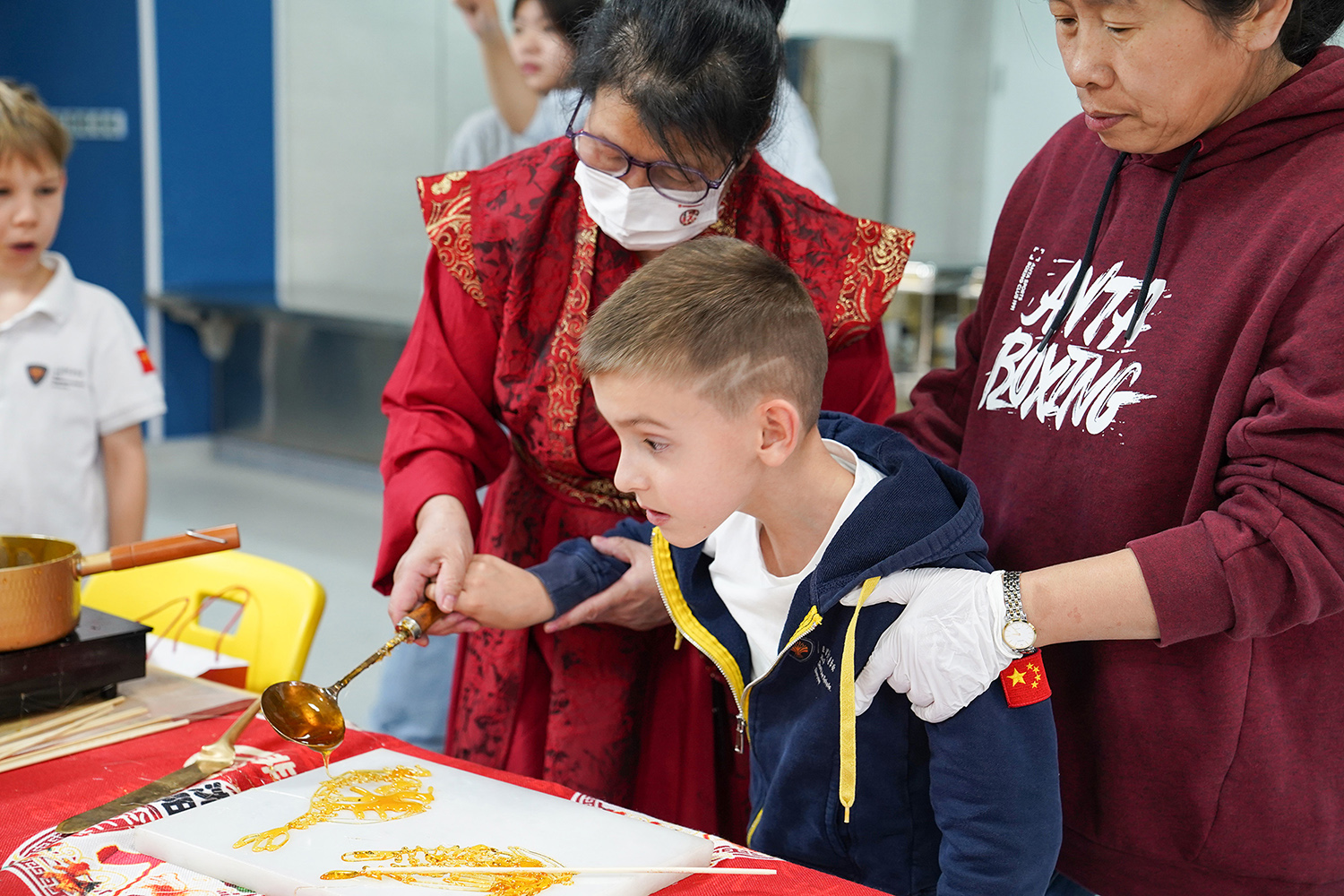 每位学生都领到了一份李老师亲手制作的糖画。大家小心翼翼地捧着这份 “甜蜜的文化礼物”,打破了文化隔阂,真正的体会到 “文化无国界” 的含义。让不同的学生在这里感受多元文化的魅力!