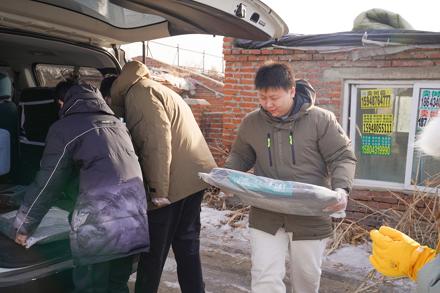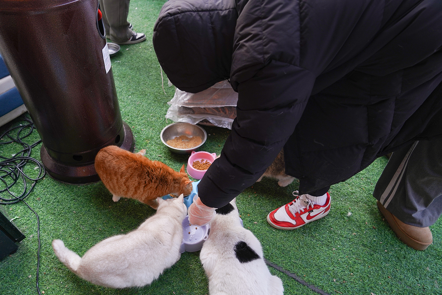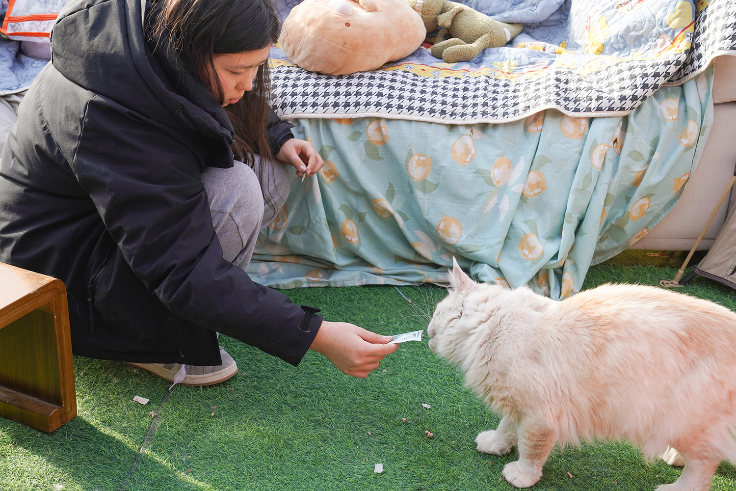同学们用汗水换来的善款未曾被辜负,2月5日,我们精心采购了猫粮、猫罐头、保暖猫窝等物资,带着沉甸甸的爱心前往救助基地,开启一场双向治愈的邂逅。