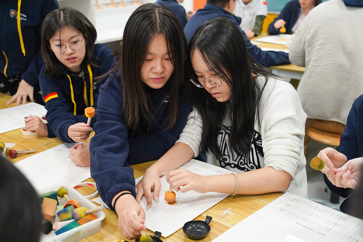 3 月 3 日,恰逢元宵佳节。这的校园,是中华传统文化的盛大狂欢。滚元宵、百福米、猜灯谜、剪纸、新年拓印…… 充满东方意趣的非遗体验,让中华传统文化在校园里生动绽放。大家的欢声笑语里是团圆暖意,中外学子一同感受传统之美。东方与西方的文化相融,这一刻,校园里没有国界,只有共享的美好、共通的祝福。