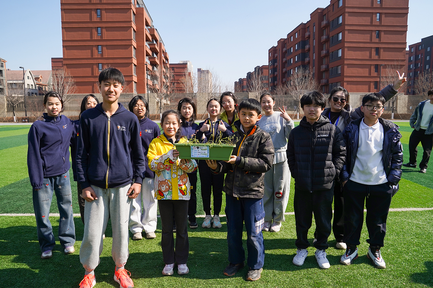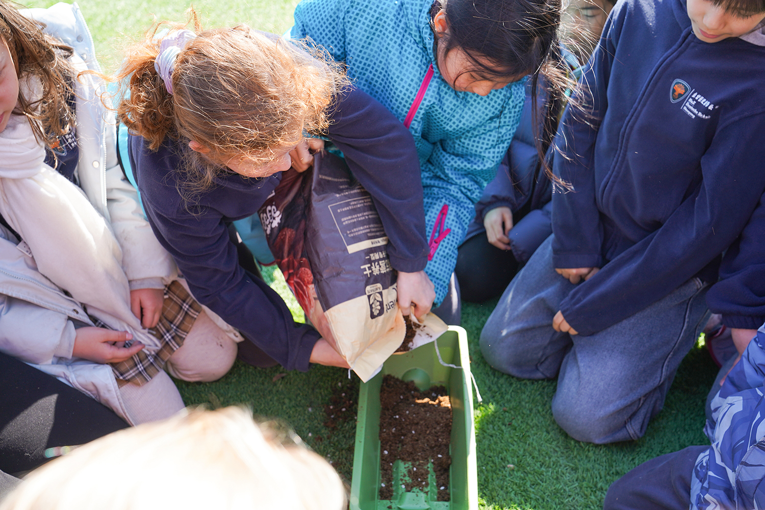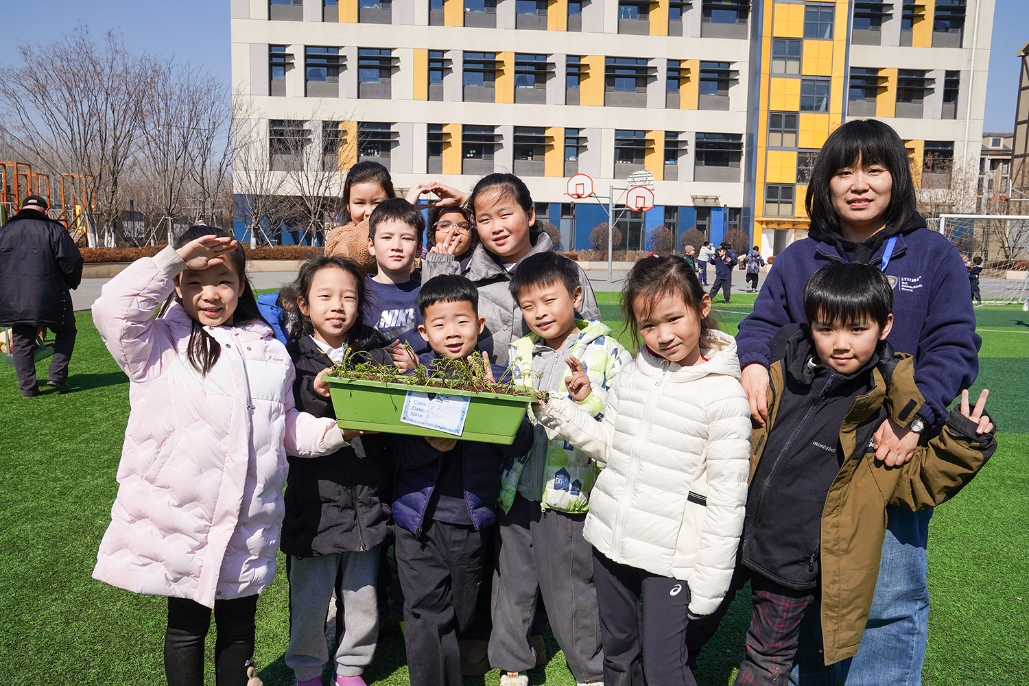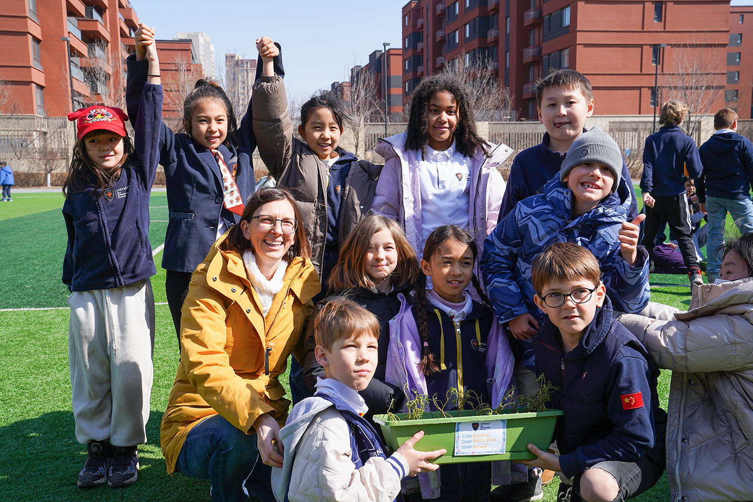 各班级有序分组、合理分工,将多元协作的理念融入每一个细节。孩子们围聚在一起,在老师的引导下,有序领取花盆、花土与花苗,没有语言的隔阂,唯有默契的配合。阳光下,孩子们俯身劳作,指尖沾染泥土的芬芳,眼神里满是专注与期待。师生们分享种植的喜悦,诉说对春天的向往,把对自然的热爱、对友谊的珍视,一同埋进温润的泥土里,让希望与绿植一同生根。