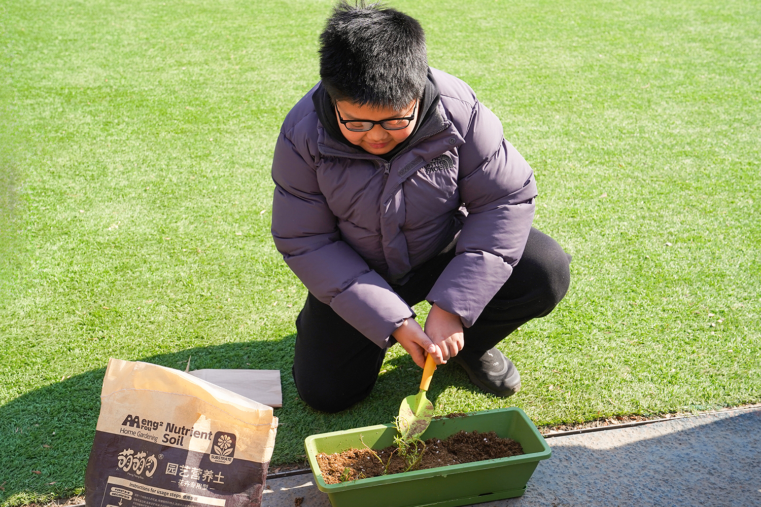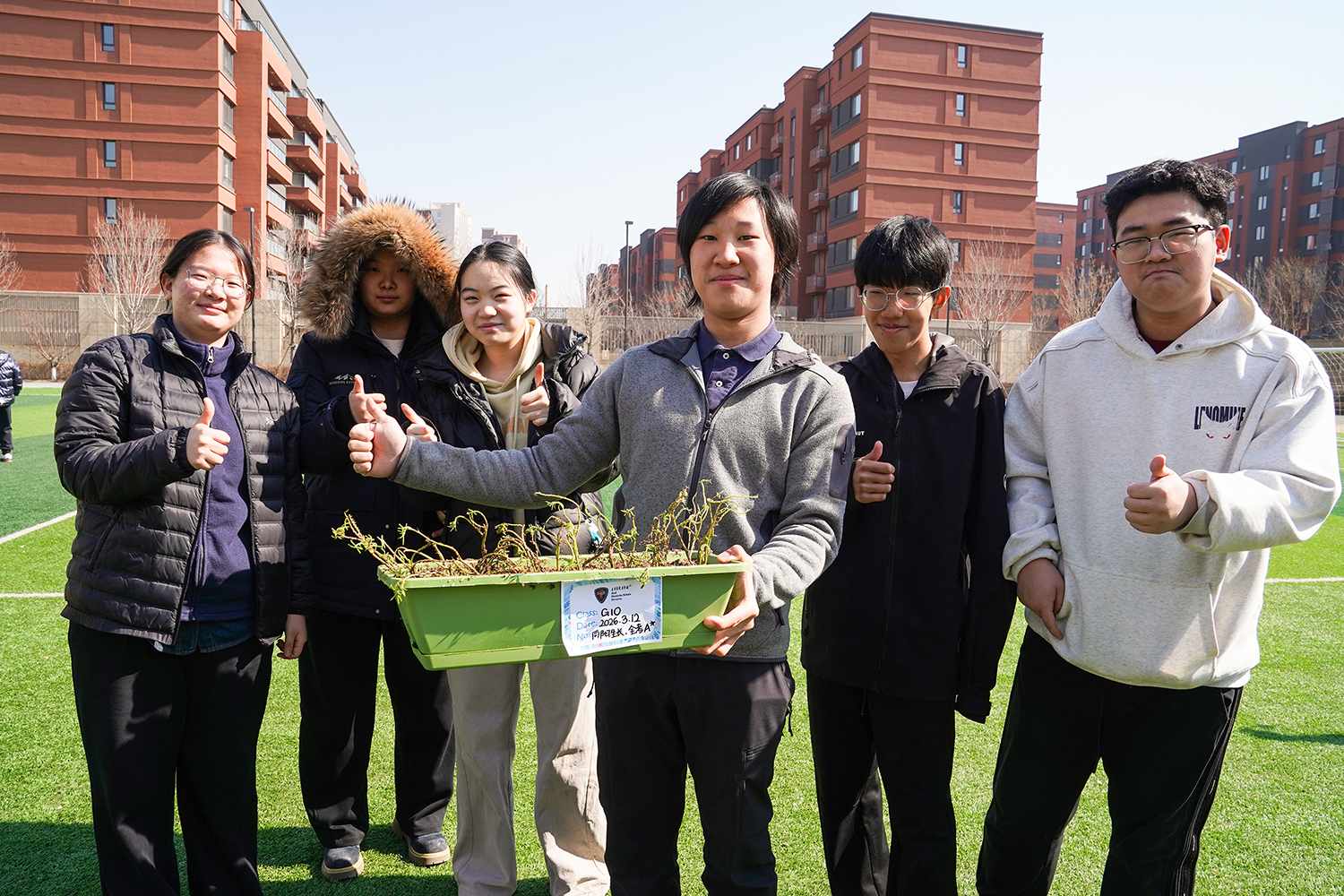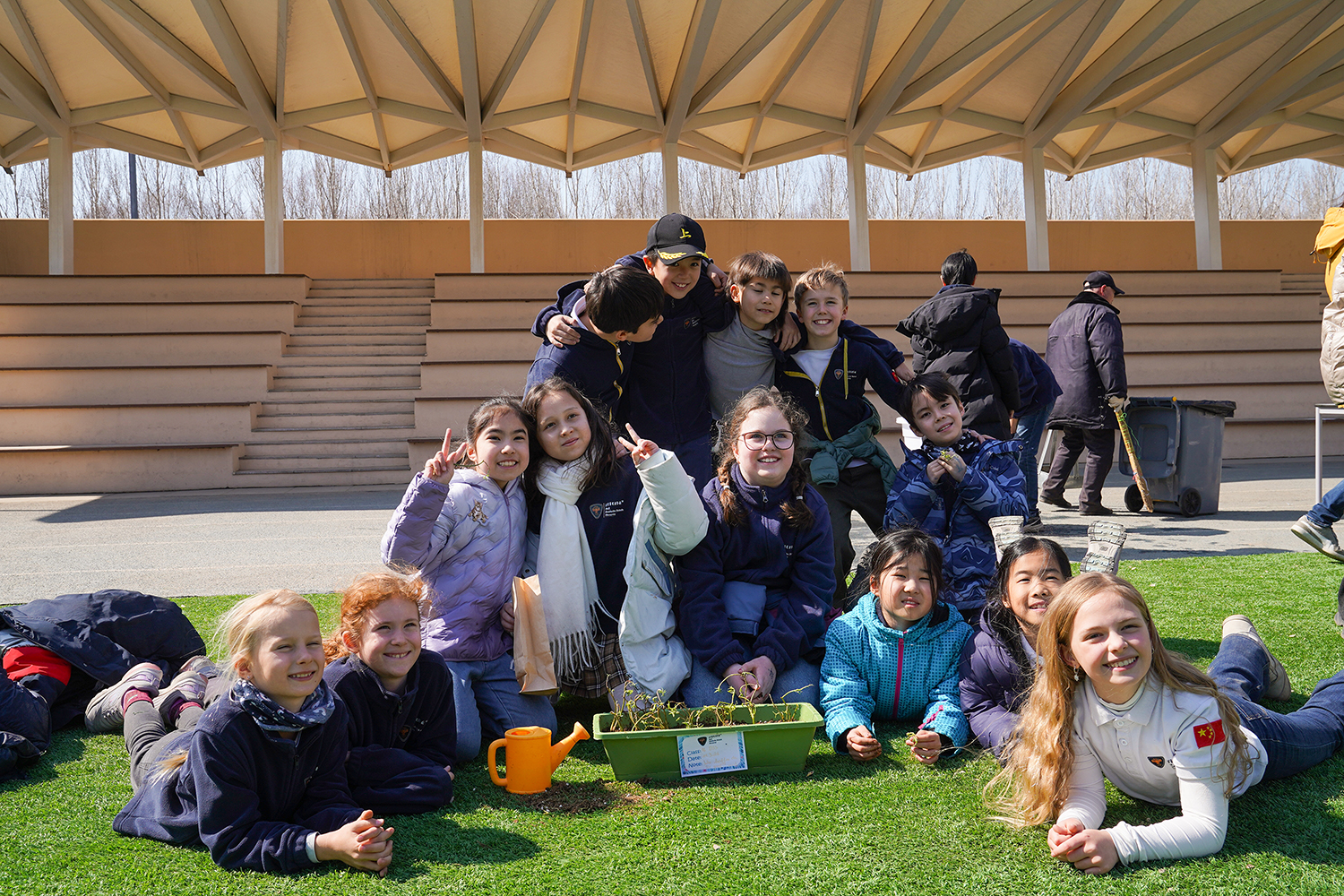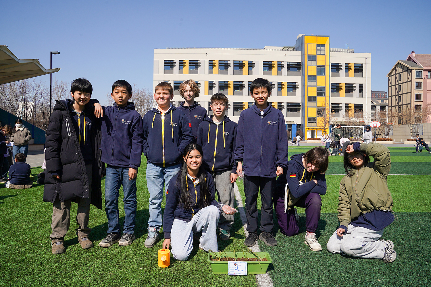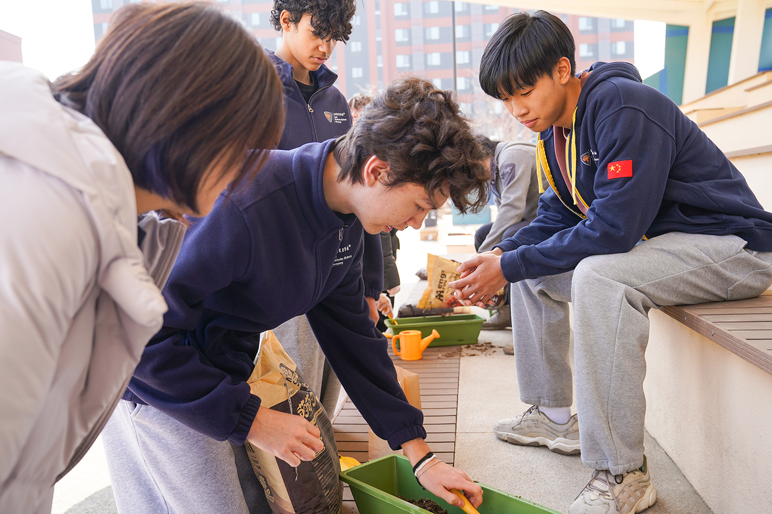 各班级有序分组、合理分工,将多元协作的理念融入每一个细节。孩子们围聚在一起,在老师的引导下,有序领取花盆、花土与花苗,没有语言的隔阂,唯有默契的配合。阳光下,孩子们俯身劳作,指尖沾染泥土的芬芳,眼神里满是专注与期待。师生们分享种植的喜悦,诉说对春天的向往,把对自然的热爱、对友谊的珍视,一同埋进温润的泥土里,让希望与绿植一同生根。