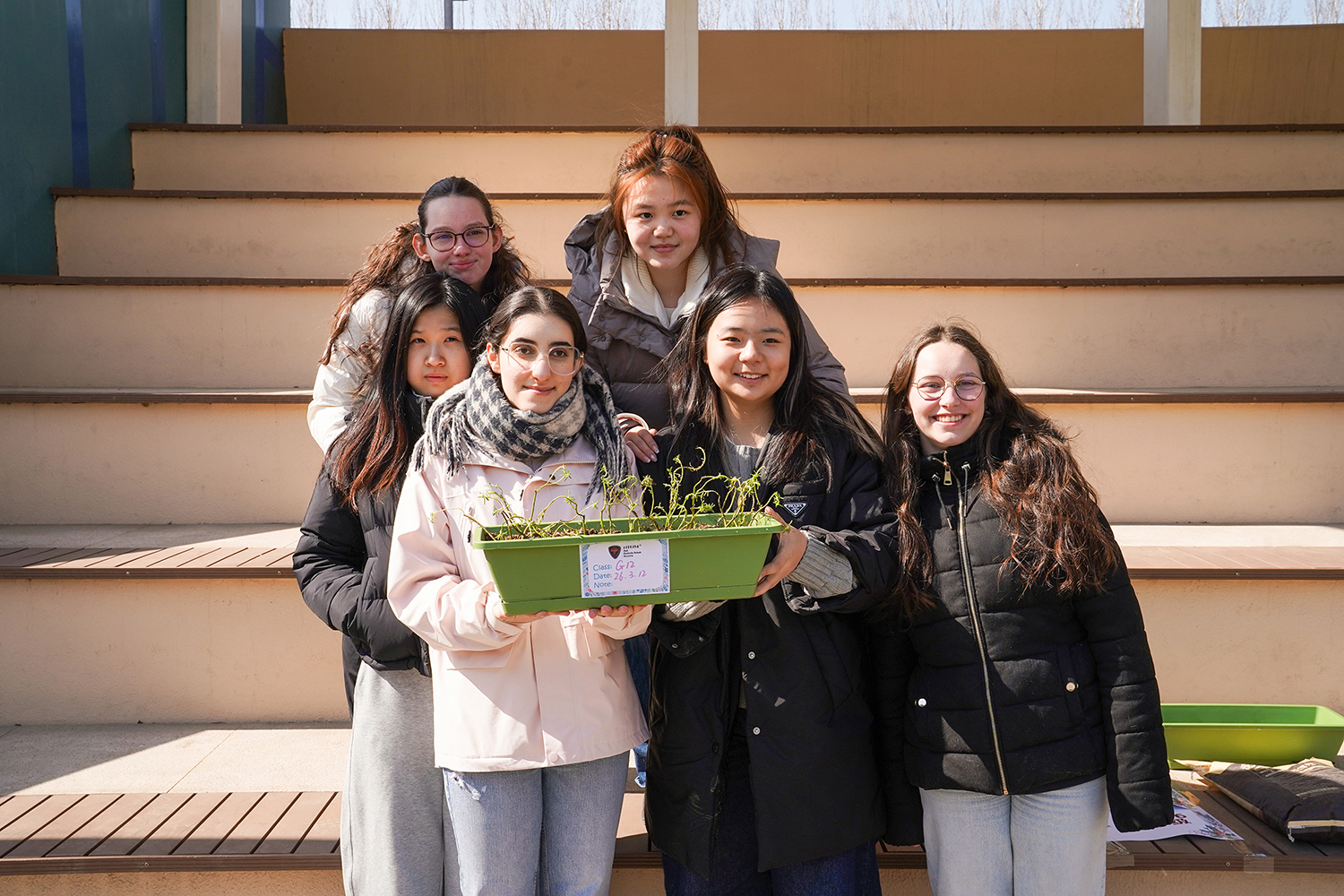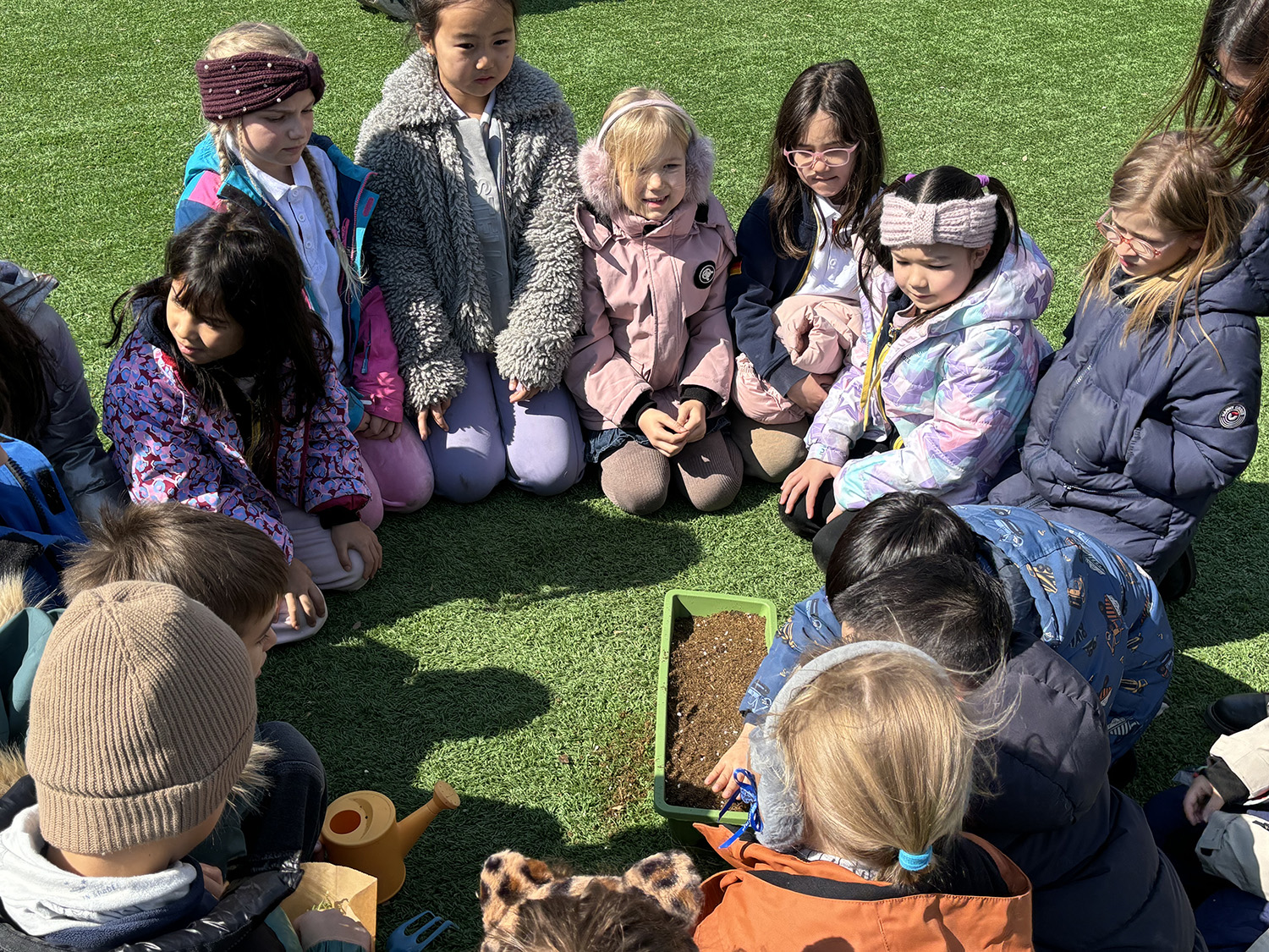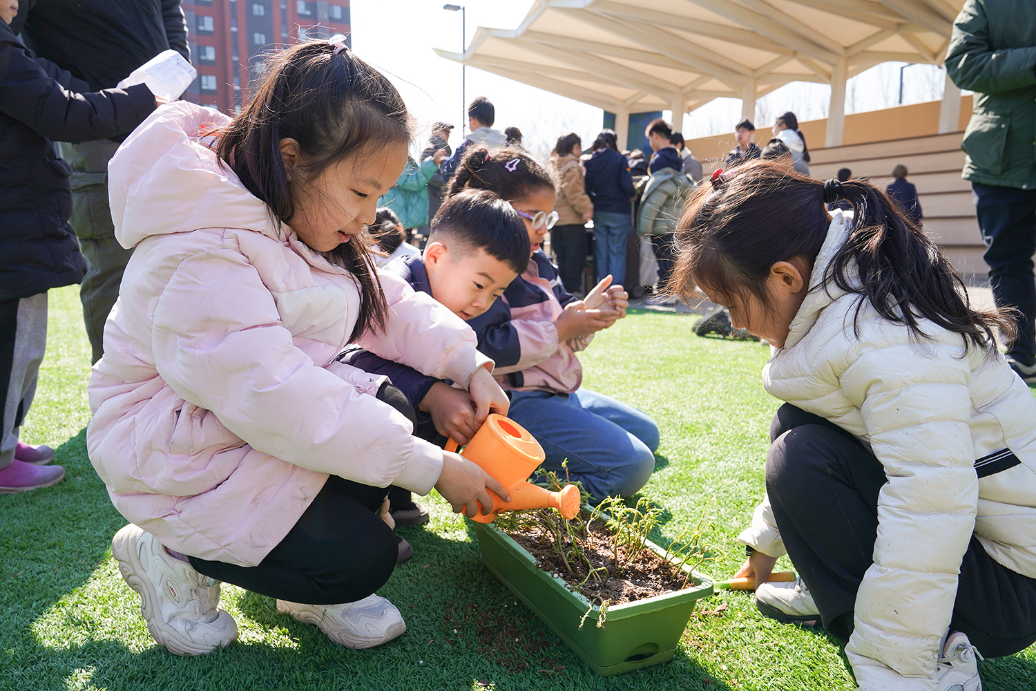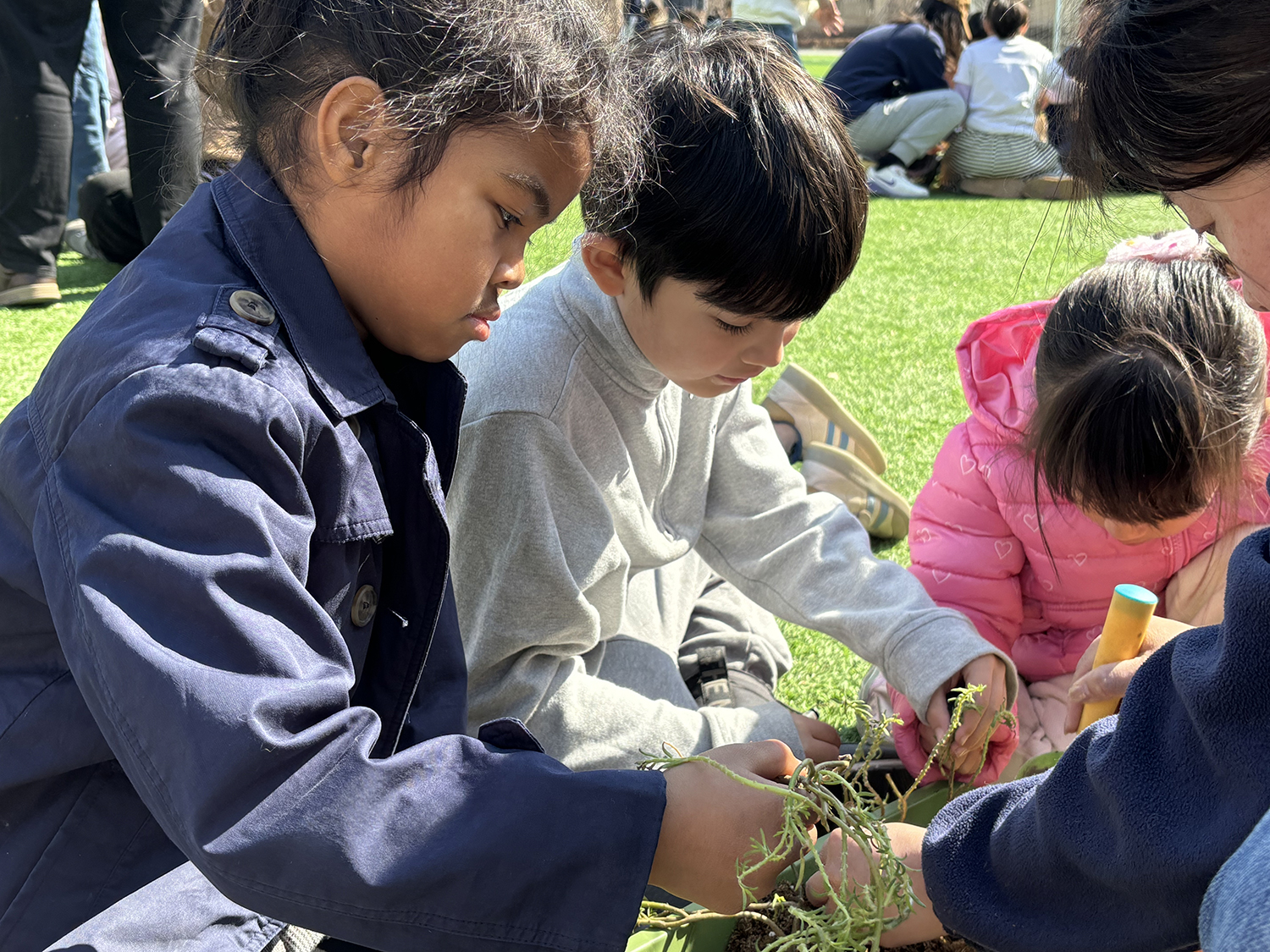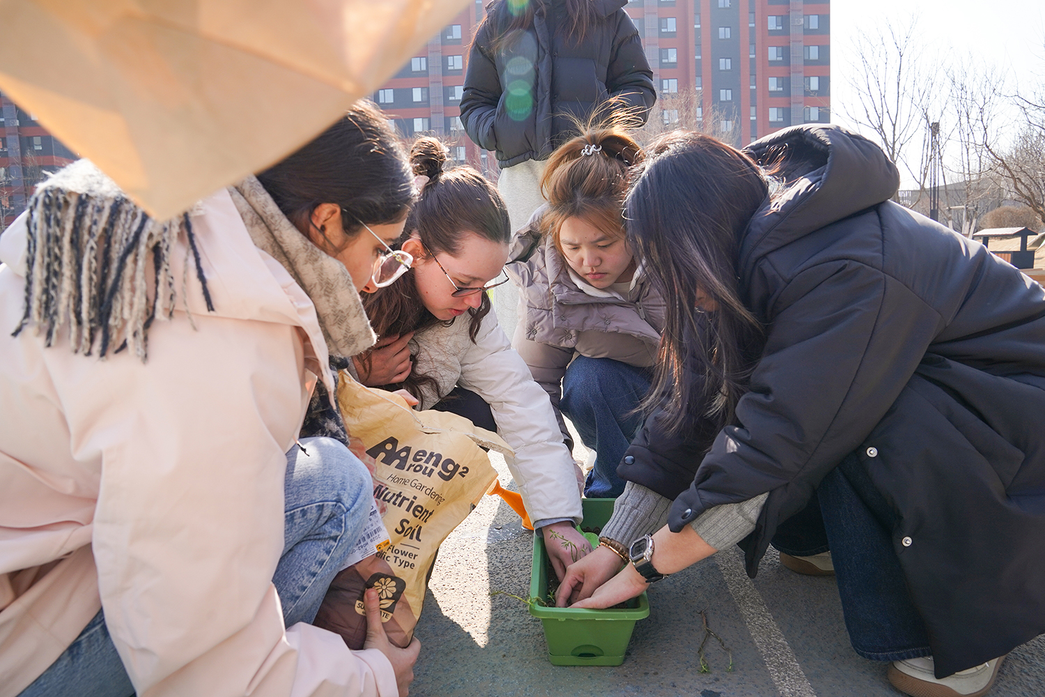 各班级有序分组、合理分工,将多元协作的理念融入每一个细节。孩子们围聚在一起,在老师的引导下,有序领取花盆、花土与花苗,没有语言的隔阂,唯有默契的配合。阳光下,孩子们俯身劳作,指尖沾染泥土的芬芳,眼神里满是专注与期待。师生们分享种植的喜悦,诉说对春天的向往,把对自然的热爱、对友谊的珍视,一同埋进温润的泥土里,让希望与绿植一同生根。