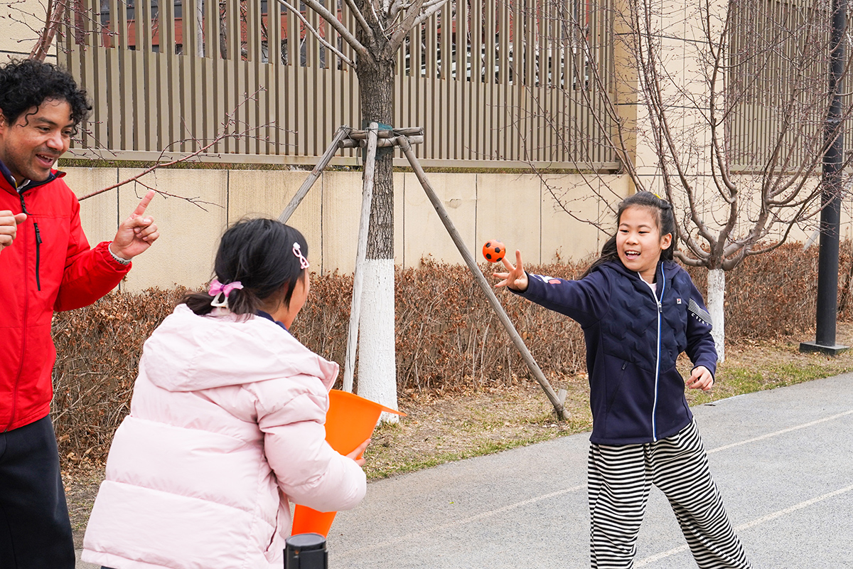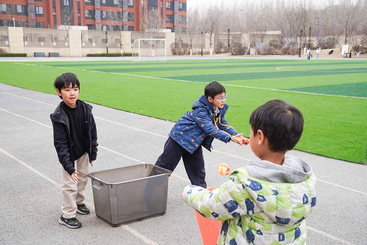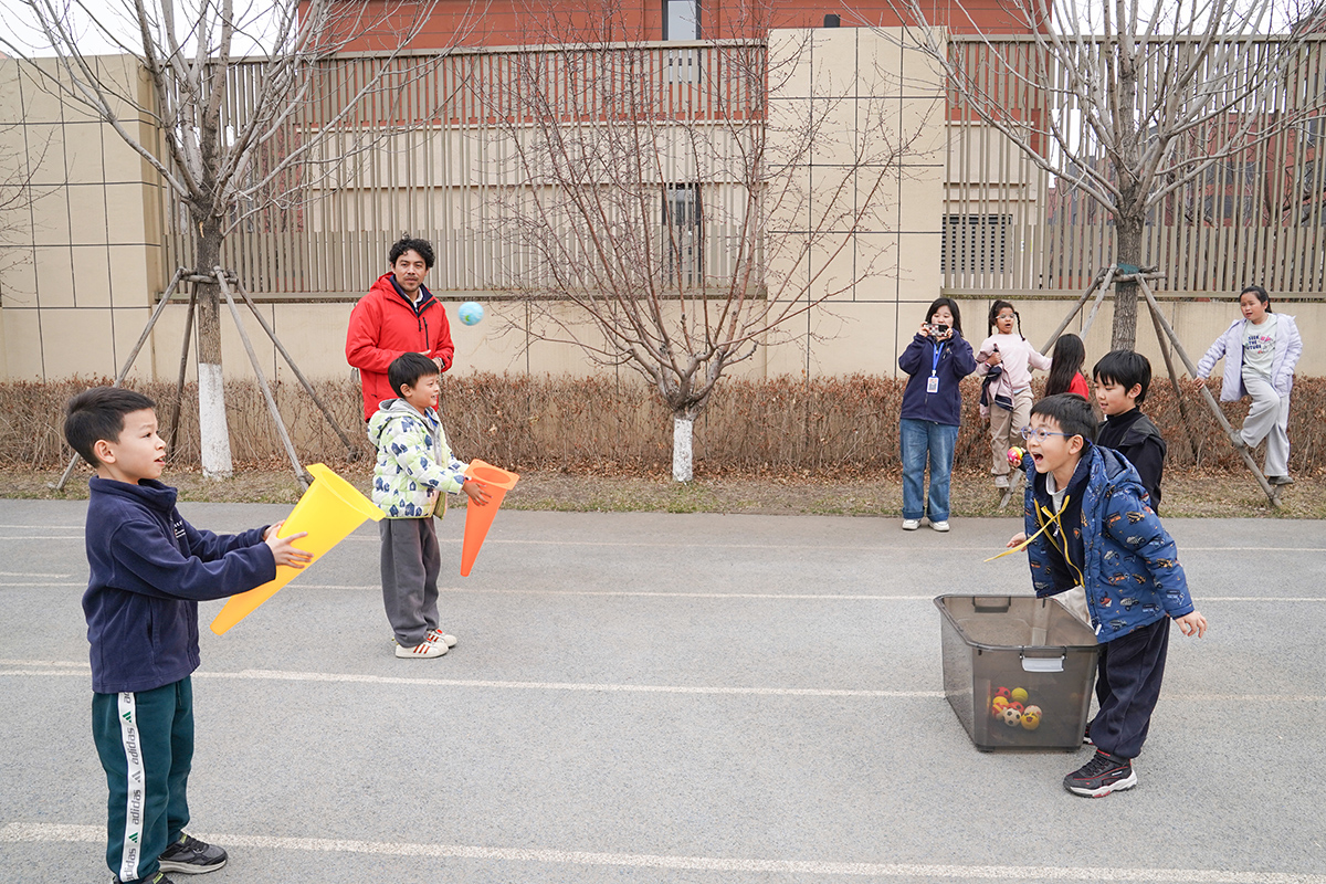 活动伊始,操场成为了欢乐的赛场,接力赛挑战正式开启。学生们需通过双人运球、投掷骰子、小踩车、投球等项目,携手完成挑战,才能获得寻找彩蛋的机会。学生们热情高涨、默契配合。大家在挑战中学会沟通协作,体会并肩前行的快乐。完成挑战后,大家化身“小小寻宝家”,在操场的草丛、花坛、滑梯旁搜寻彩蛋,每找到一颗,都洋溢着收获的喜悦。